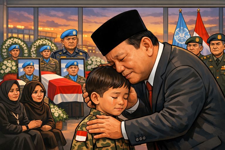 Momen Haru di Bandara Soetta, Prabowo Cium Kening Anak Prajurit TNI yang Gugur