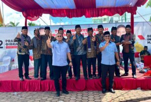 kliksumbar — Teriakan Prabowo Presiden, Gibran Wakil Presiden bergema sambil dua jari ke atas di halaman TKD Sumbar di perempatan Sudirman Padang, Kamis 8/2-2024.